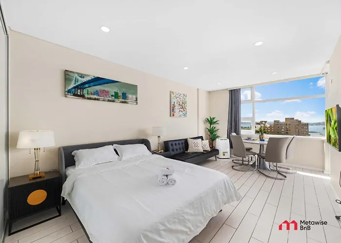 Situado en el barrio Kirribilli, a tan solo 1 km del Pylon Lookout, el Metawise Harbour View Studio Kirribilli Sídney ofrece vistas a la ciudad. Los huéspedes pueden relajarse y contemplar las vistas al mar desde el patio de este apartamento de 1000 m².